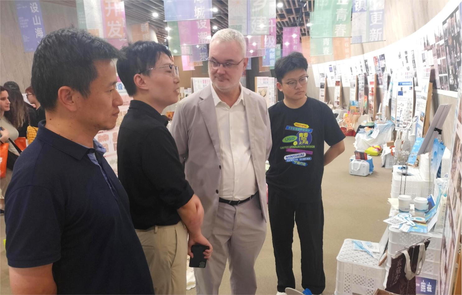 学子的作品在展览中深受国内外学者的认可与欢迎。褚力副教授用英语向西班牙马德里理工大学亚洲事务校长代表Xavier Ferre Grau先生介绍了学生作品,Xavier Ferre Grau先生积极肯定了beat365官网学生的毕业设计创新能力和价值。