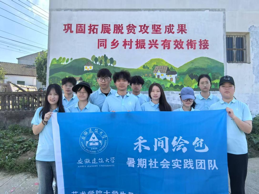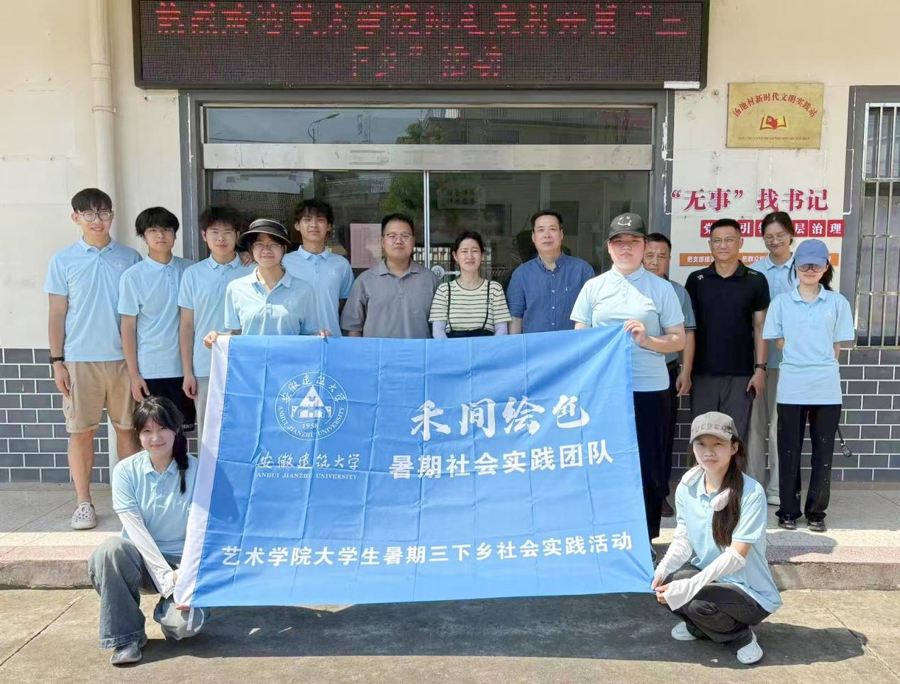 本网讯 7月7日至8日,艺术学院“禾间绘色”暑期三下乡实践团队的10名学生在艺术学院专职辅导员施林坡、美术教研室教师石莉莉的带领下,踩着发烫的乡间路,把艺术课堂搬进了beat365官网对口扶贫的六安市舒城县汤池村的寻常巷陌。这场以“用画笔讲好乡村故事”为初心的三下乡之旅,让乡村振兴与艺术在勾勒间撞出别样火花。