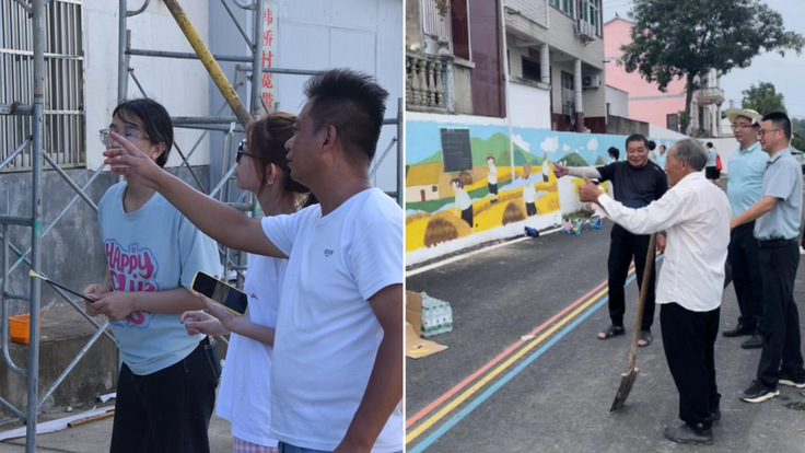 高温下,师生们凌晨4点便出发创作,每天按时完成既定任务。绘制中,他们邀请村民参与、听取意见,让艺术创作成为连接高校与乡村的情感纽带。路过的村民都会驻足观看,成为村里最热闹的打卡点。