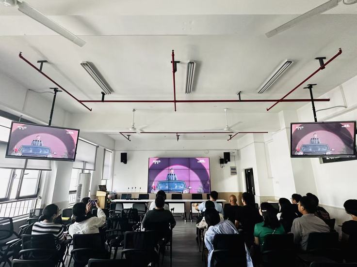本网讯 9月3日上午,纪念中国人民抗日战争暨世界反法西斯战争胜利80周年大会在北京天安门广场隆重举行。中共中央总书记、国家主席、中央军委主席习近平发表重要讲话并检阅受阅部队。艺术学院领导班子、教学系部负责人、党支部书记、辅导员、行政人员及教师代表等在徽韵楼6706会议室集中收看阅兵仪式直播。习近平总书记的重要讲话令人心潮澎湃、热血沸腾。艺术学院师生备受鼓舞,纷纷表示,将传承和弘扬伟大抗战精神,踔厉奋发、勇毅前行,为以中国式现代化全面推进强国建设、民族复兴伟业而团结奋斗!